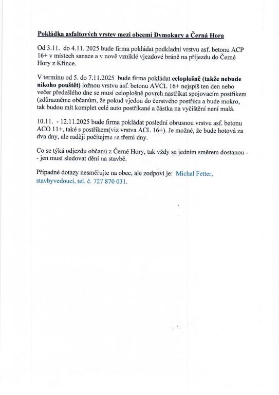 Oznámení o vyhlášení revize katastru nemovitostí Černá Hora u Dymokur